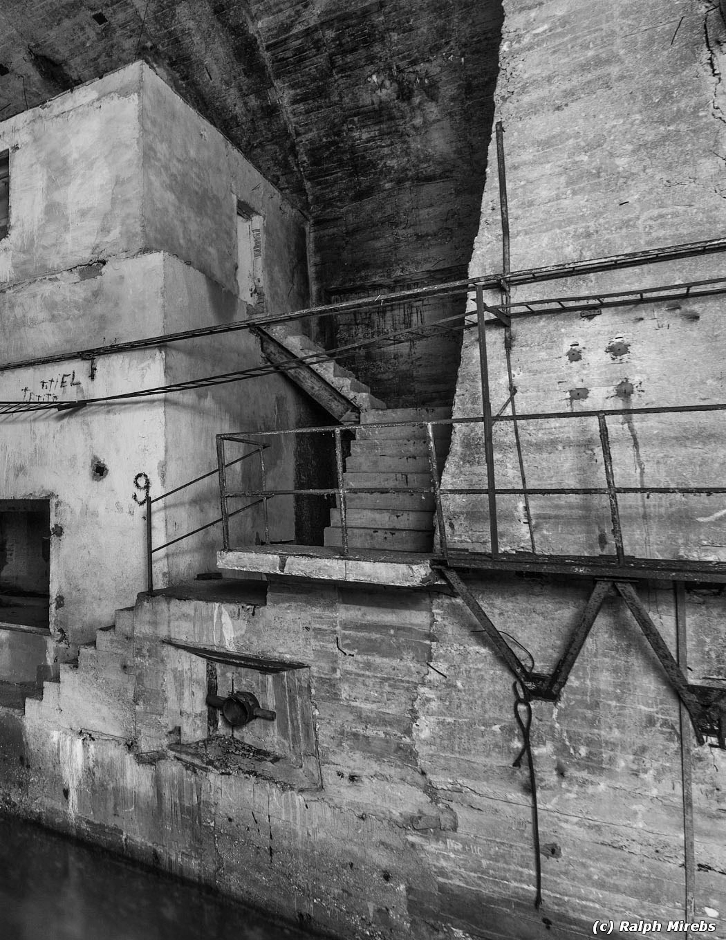 Отдельно стоит упомянуть достаточно крупные заделы боковых блоков находящиеся после кранов. Доступ к ним возможен лишь через железные мостки, что крайне усложняет исследование. В один мы смогли зайти, другой сфотографировали с противоположного берега.