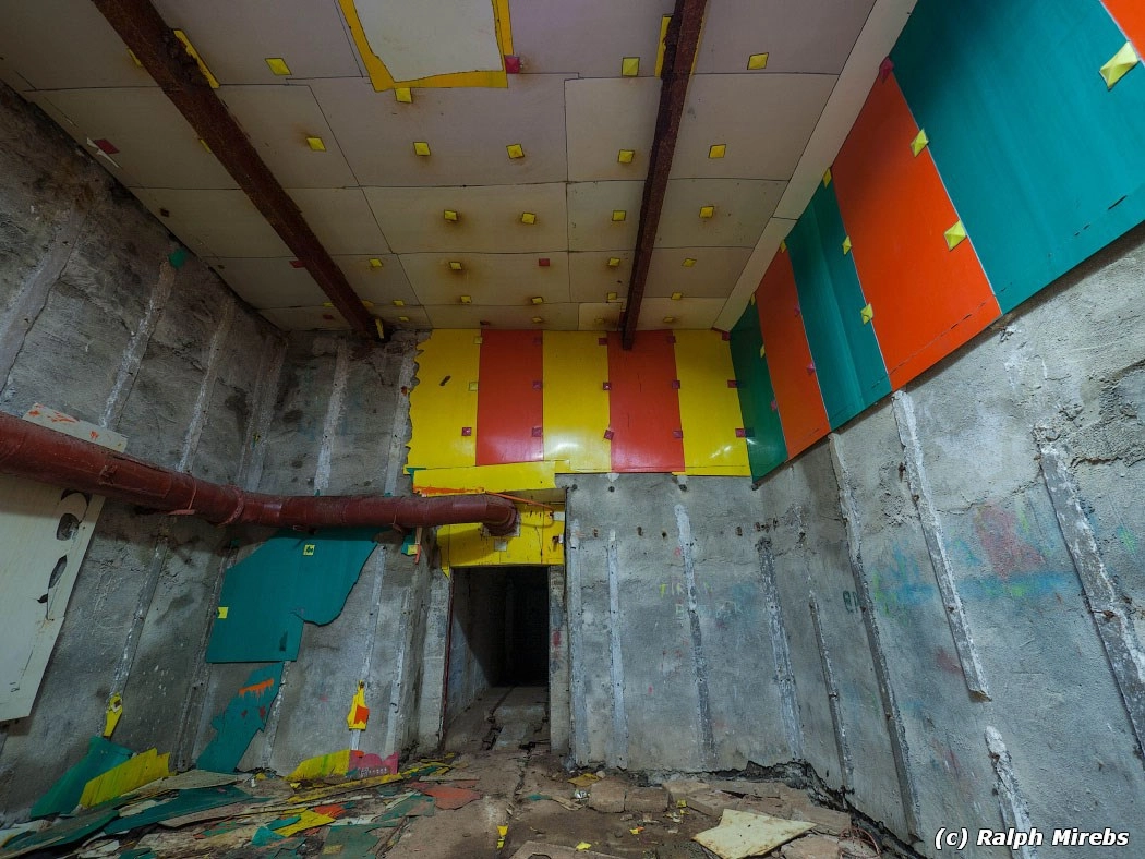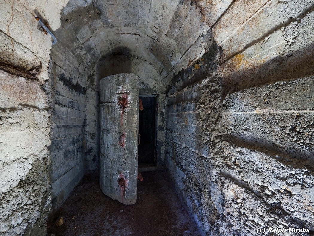 Тут я остановлюсь на занимательной особенности албанской военки, а именно обделке бетонных сводов. Львиная доля их сооружений стоит в простом бетоне, со следами строительной опалубки, но в отдельных местах бетон обделан цветным пластиком, листы которого достаточно плотно подогнаны. Вряд ли дело в эстетике, скорее всего это бюджетный вариант металлоизола.