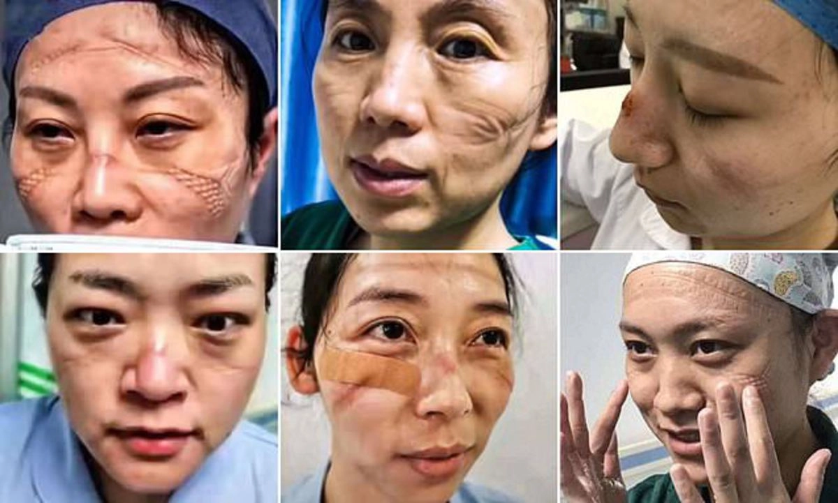 Как в конце смены выглядят лица врачей, борющихся с коронавирусом в Ухане