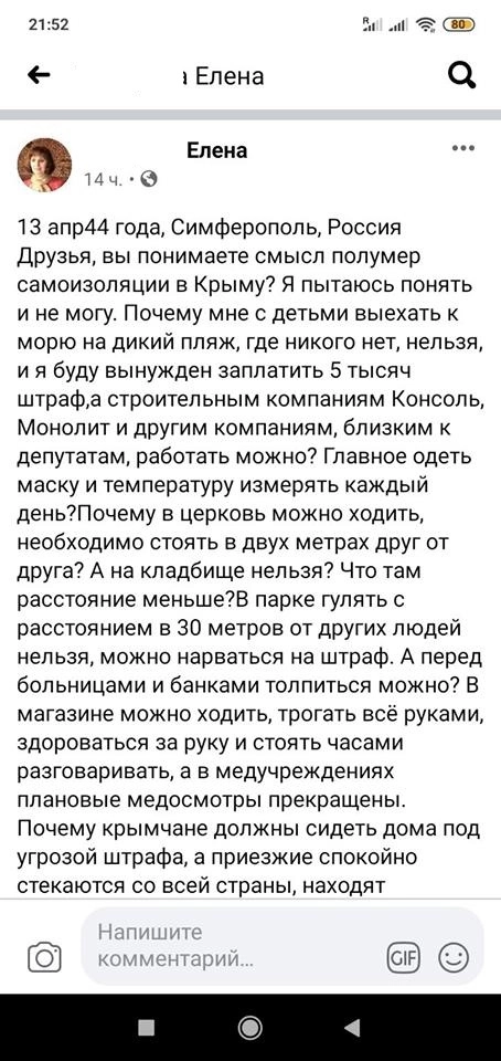 Кроме того, пользователи соцсетей констатируют факт бездействия крымских властей и указывают на двойные стандарты, применяемые руководством региона в вопросах миграции граждан.