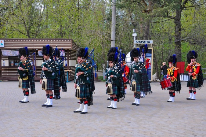 Первыми свое мастерство продемонстрировали музыканты из Новой Зеландии. Выступление городского оркестра волынок из новозеландского городка Крайстчерч можно было увидеть в парке Фили.