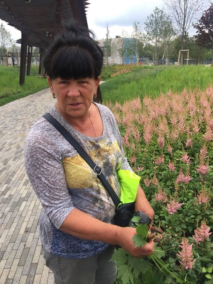 Выяснилось, что она сажала эти клумбы, а теперь ухаживает за ними.