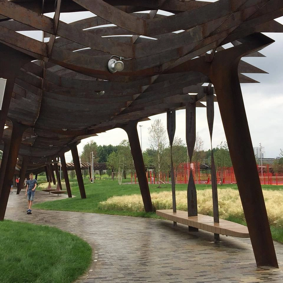 Это классно! Рядом же ЗИЛ, поэтому отсылки к индустриальной эпохе к оформлении парка более чем уместны.