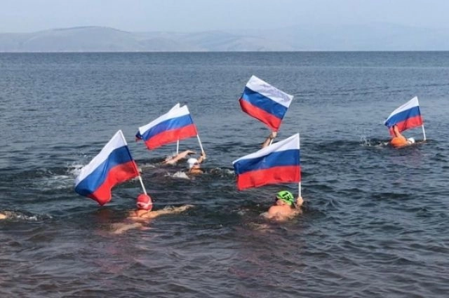 Необычным выдалось празднование Дня флага в Красноярском крае. Несколько человек в честь праздника устроили заплыв в холодной воде местного водохранилища.