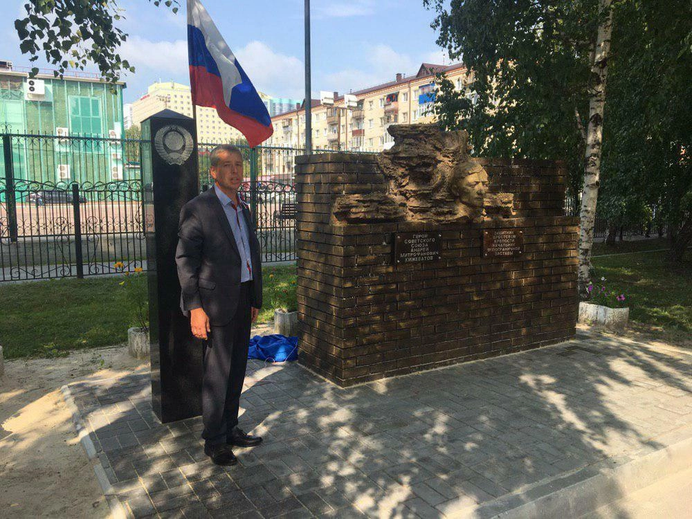 В Тюмени в День флага открыли мемориал защитнику Брестской крепости Герою СССР Андрею Кижеватову. Монумент находится на территории центра «Клуб детского творчества им. А. М. Кижеватова».