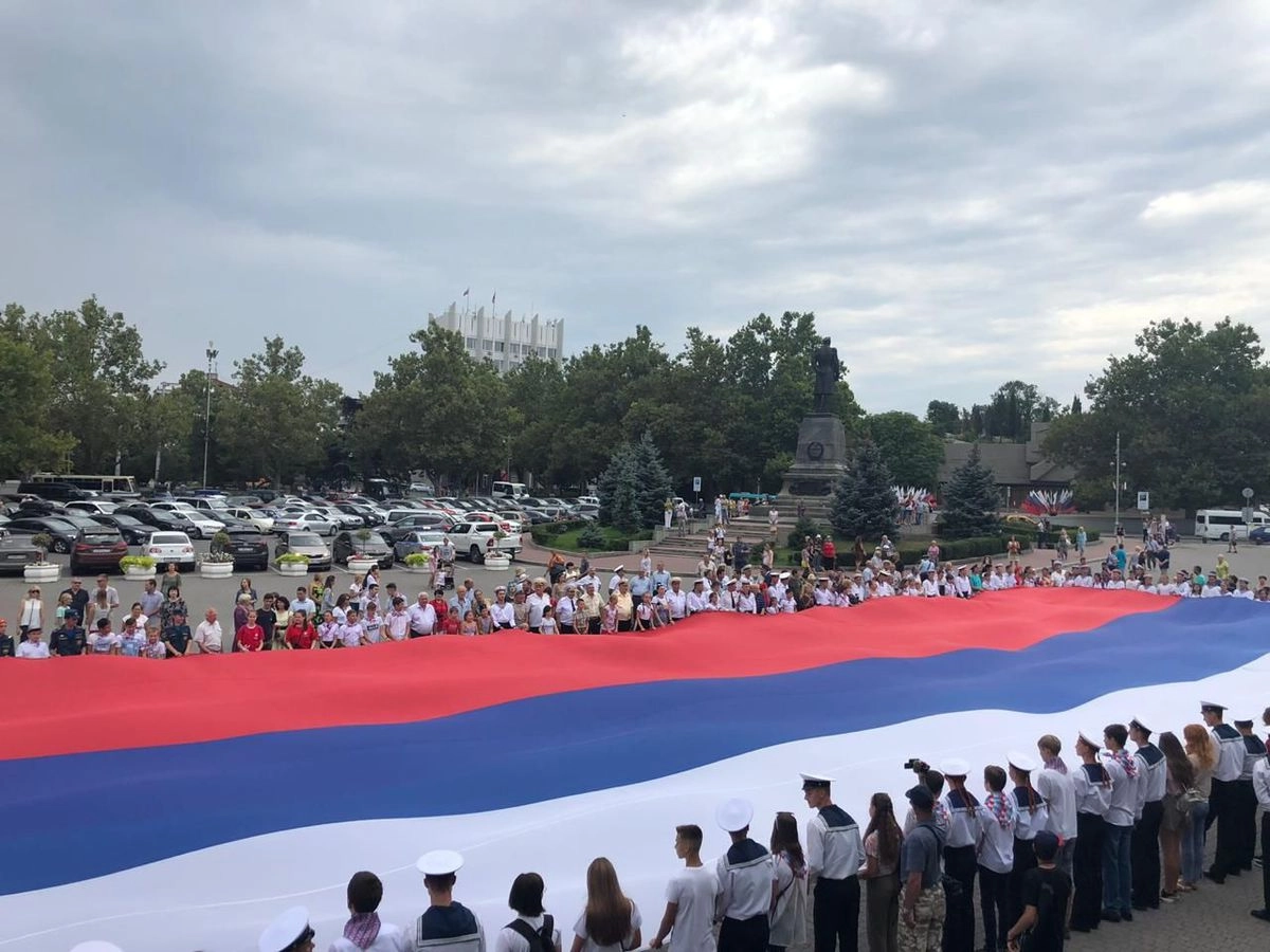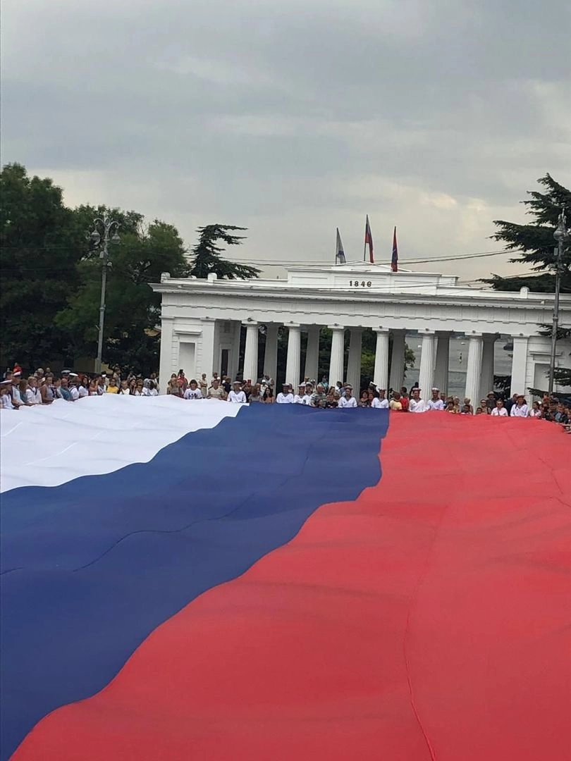 В Севастополе прошла церемония торжественного выноса триколора «Флаг моего государства». Это знамя хранится в Севастопольском военно-историческом музее-заповеднике. Размеры полотнища составляют 52 метра в длину и 12 метров в ширину.