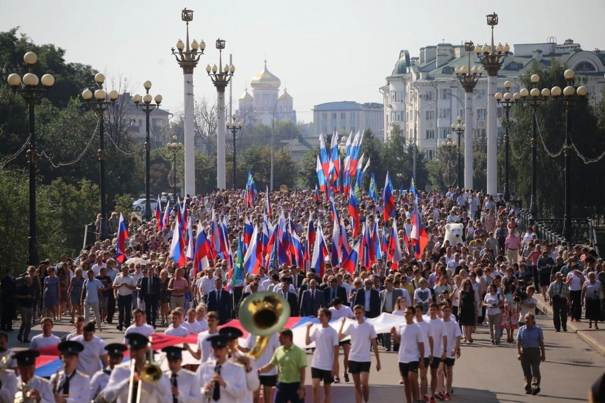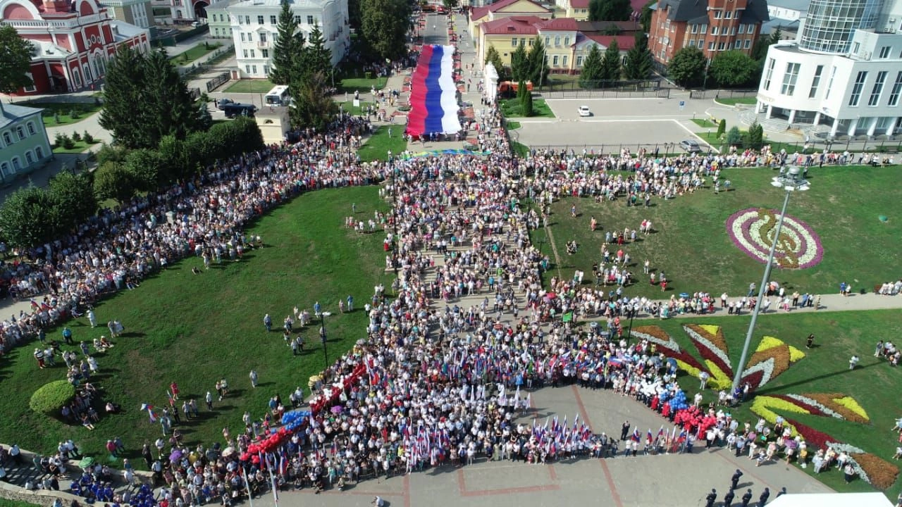 В Ульяновске в День флага прошло шествие с 50-метровым триколором. В нем принимали участие члены молодежных и общественных организаций, волонтеры, представители «Юнармии» и почетные граждане города.