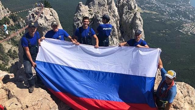 А еще государственный флаг России установили на вершине самой высокой горы Крыма — Ай-Петри.