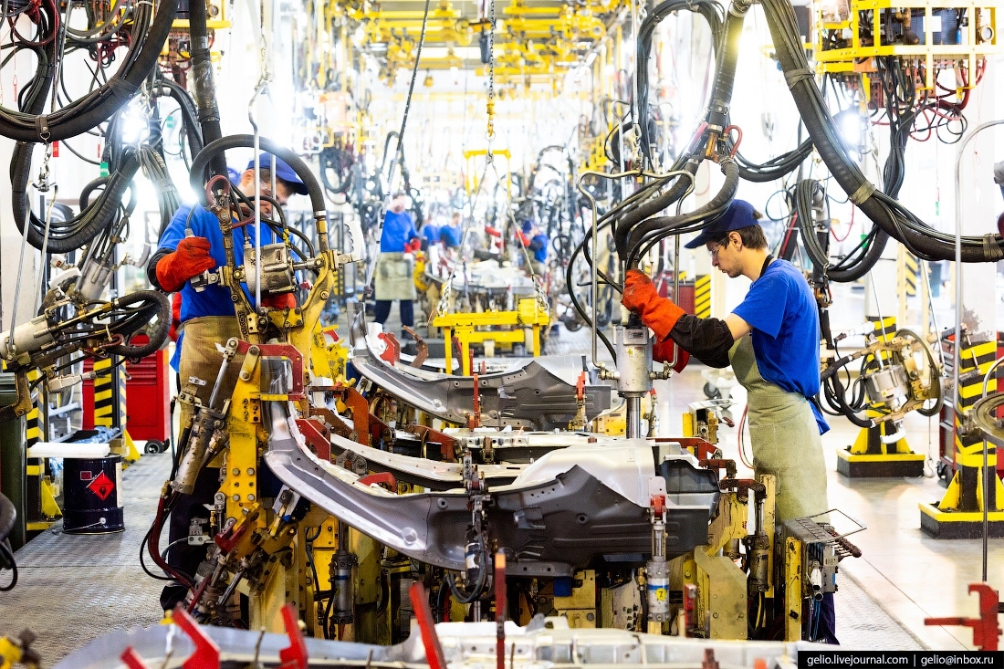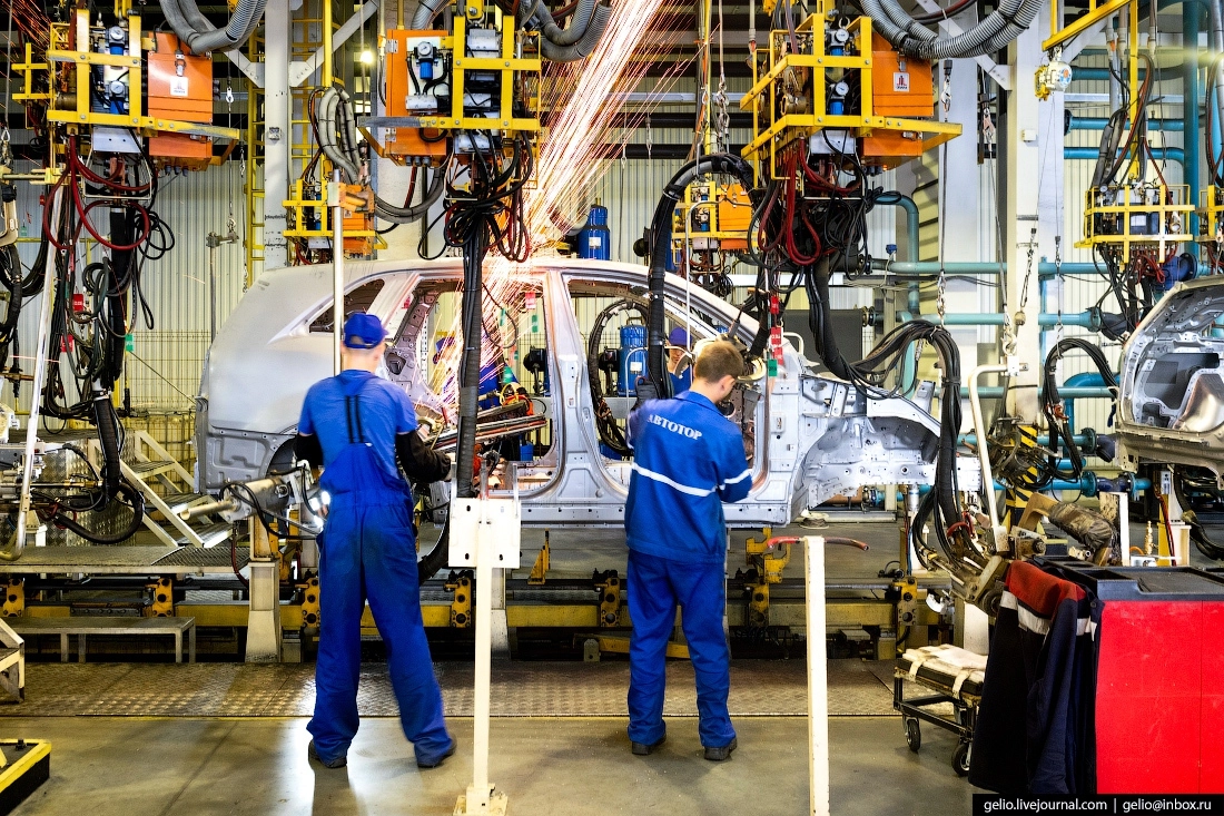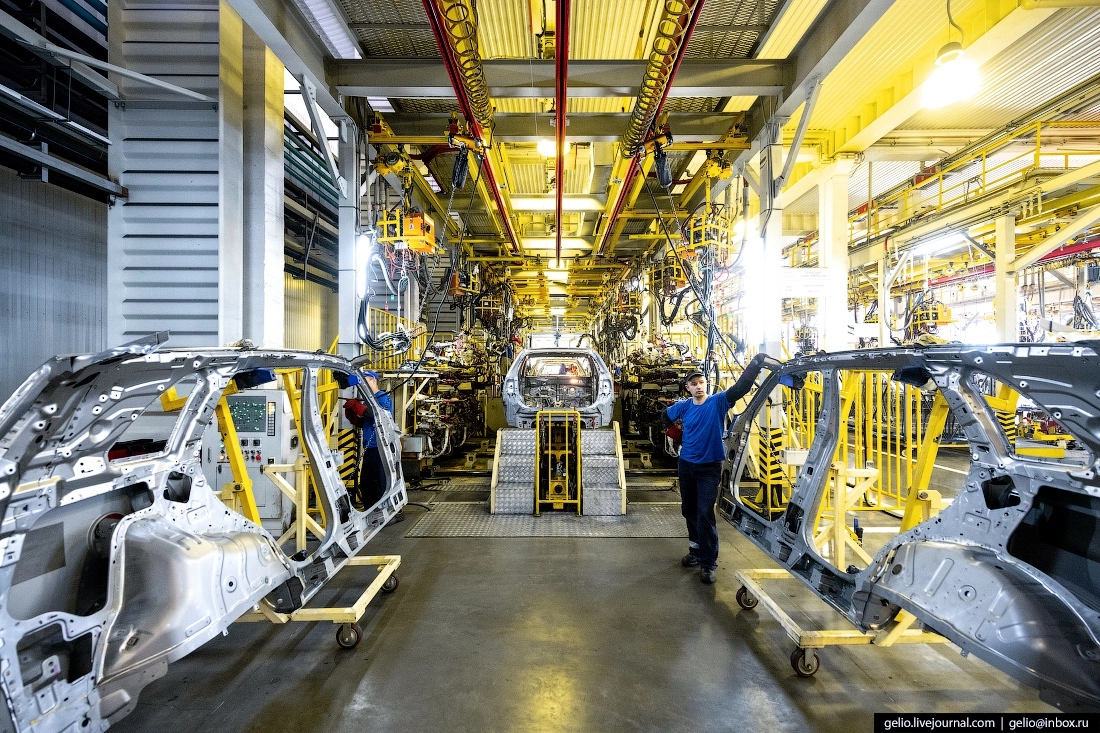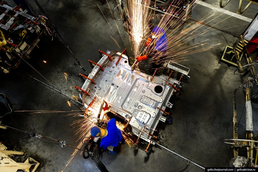 На предприятие приходят формованные листы металла, из которых сначала варят отдельные элементы будущих автомобилей.
