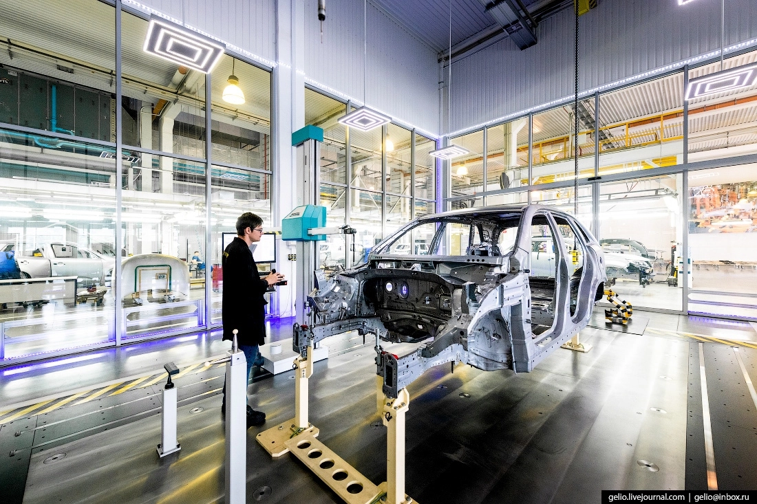 После сварки специалисты измеряют параметры геометрии кузова на координатно-измерительной машине. Из партии выбирается один случайный автомобиль, который проверяют по 300 точкам в системах координат x, y и z. Если выявляются отклонения более 1,5 миллиметра, на производство передаётся информация о том, что необходимо отрегулировать сварочные кондукторы.
