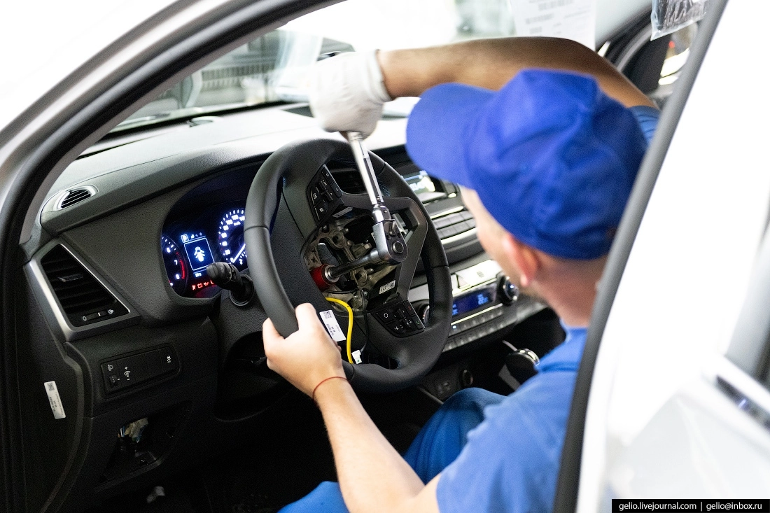 Контролёр собственноручно осматривает все системы автомобиля и сверяет его комплектацию с монтажной картой.