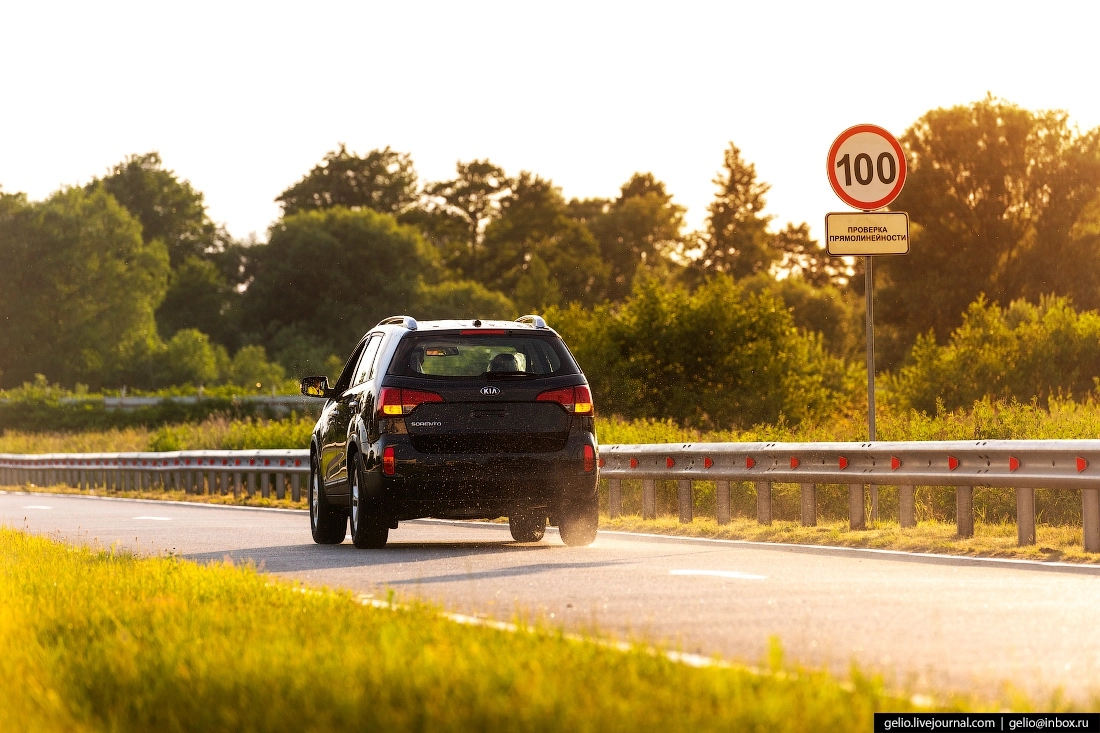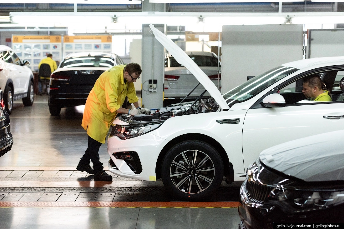 После схода с конвейера автомобиль отправляется на испытательный трек. На разгонной прямой контролёр-аудитор, сидящий за рулем KIA Sorento, проверяет прямолинейность движения. На других участках трека — стояночный тормоз, систему трогания при подъёме, а также наличие посторонних шумов.