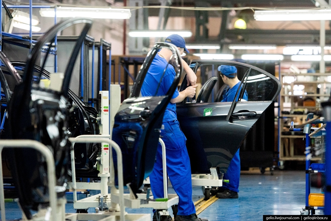 Один из участков конвейера, на котором устанавливают и регулируют двери.