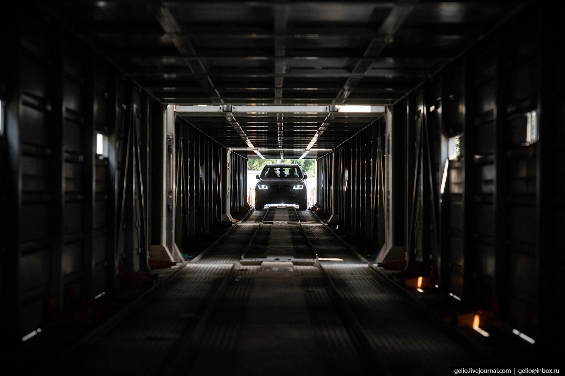 Автомобиль загружают в железнодорожный вагон для отправки в дилерские салоны. Сначала автомобили поступают к заказчикам в Москву, а оттуда — распространяются по всей стране. Сейчас машины калининградского производства продают на территории России, но в 2018 году их начнут поставлять в страны Таможенного союза.