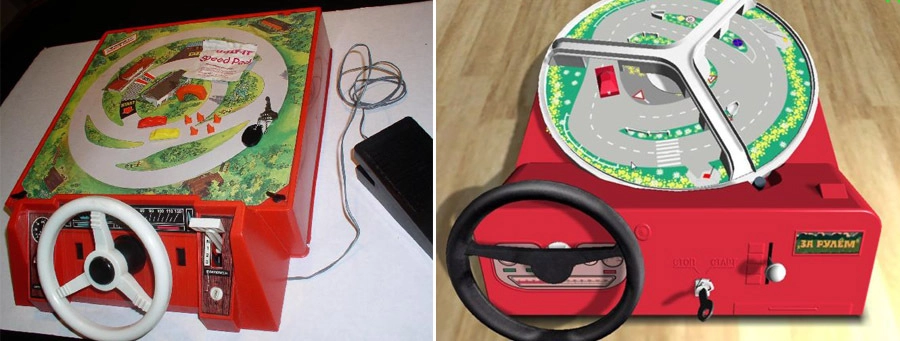 Всё бы ничего, но советская игра «За рулём» была полностью с копирована с появившеся тремя годами рании игры «U Drive it». Там немного другой дизайн того, что находится на диске, но принцип игры идентичен — вращающийся диск, машинка на магнитике, руль и передачи (которые регулируют скорость вращения диска).