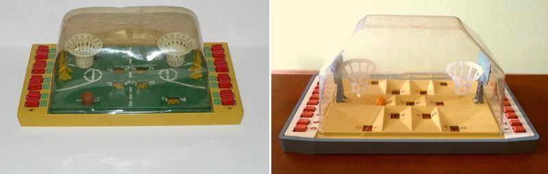 07. Баскетбол. Ещё одна поппулярная советская настольная игра, имеющая заграничный прототип. На фото справа — советский настольный «Баскетбол», на фото слева — его западный аналог. Игры чуть отличаются дизайном, но принцип абсолютно одинаковый.