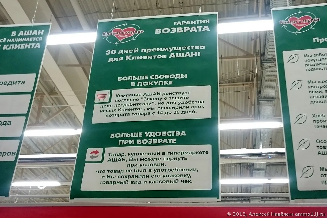 Срок возврата в магазинах «Ашан» составляет 30 дней.