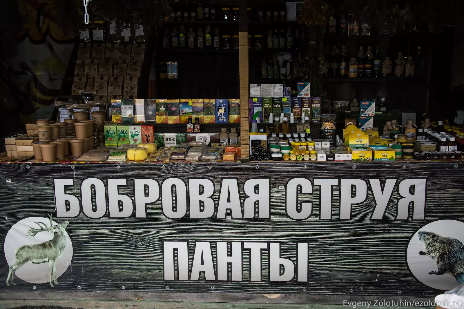 Туристический центр Манжерока — стихийный рынок с дарами Алтая, а точнее с подозрительного качества медом и мясом, которыми торгуют местные перекупщики.