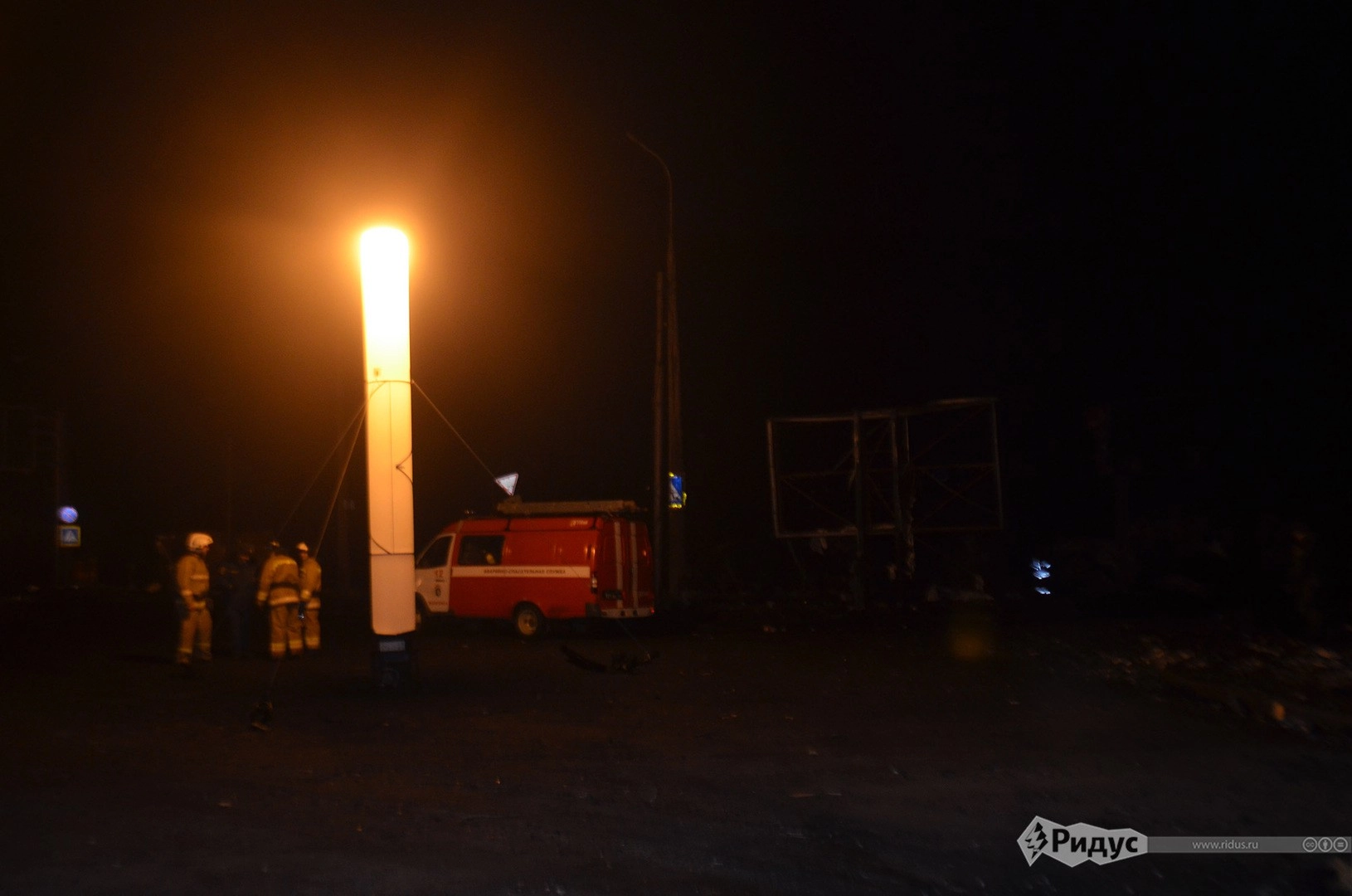 На трассе стоял обуглившийся уже автомобиль, попавший под взрывную волну.