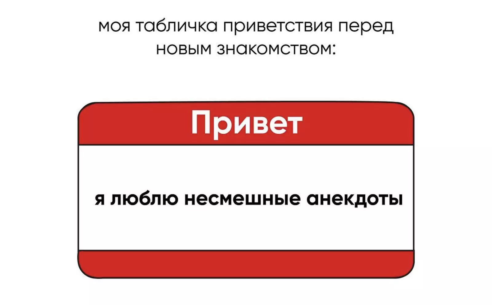 Вам знакома такая вещь, как таблички с именем и надписью «Привет»? Наверняка вы видели такие в кино или если хотя бы раз бывали на мероприятиях по типу speed-dating (свидания на время). Как правило, при первом знакомстве у нас есть лишь несколько мгновений, чтобы произвести впечатление и запомниться новому человеку.