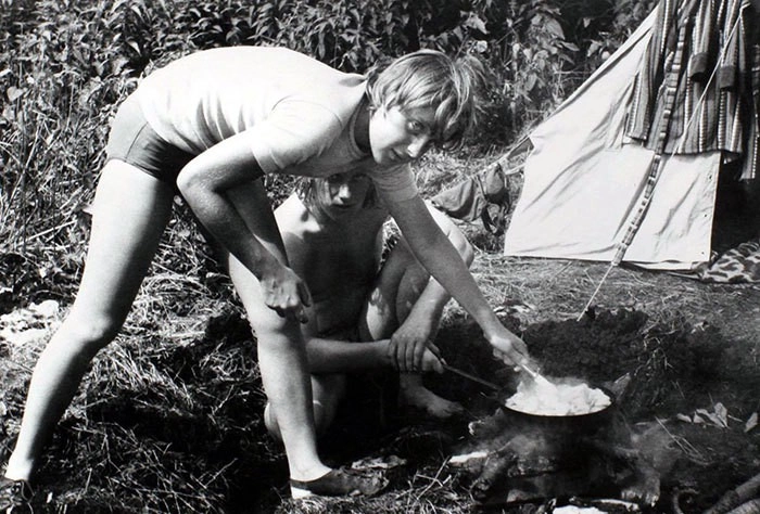 Ангела Меркель, действующий федеральный канцлер Германии, готовит еду на костре, июль 1973 года