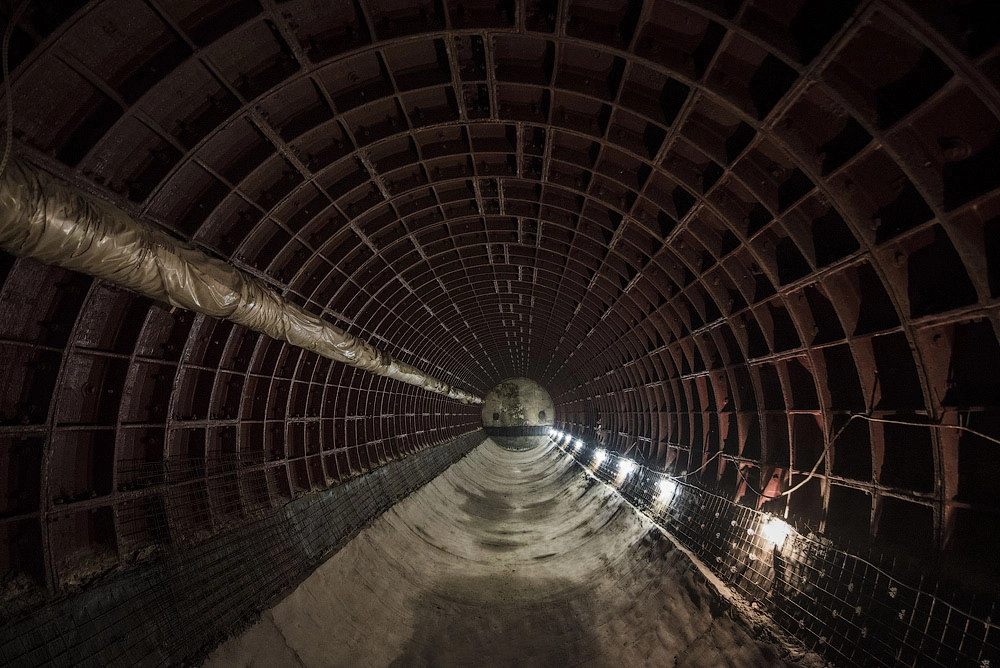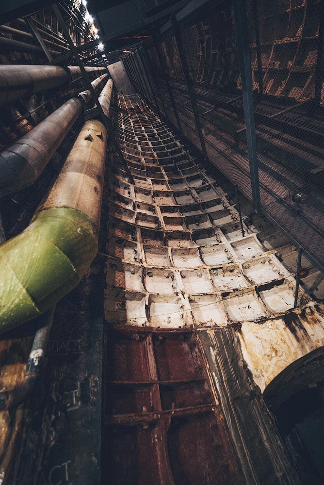 4. И оказываешься в вертикальной шахте, выполненной в стандартной метростроевской манере.