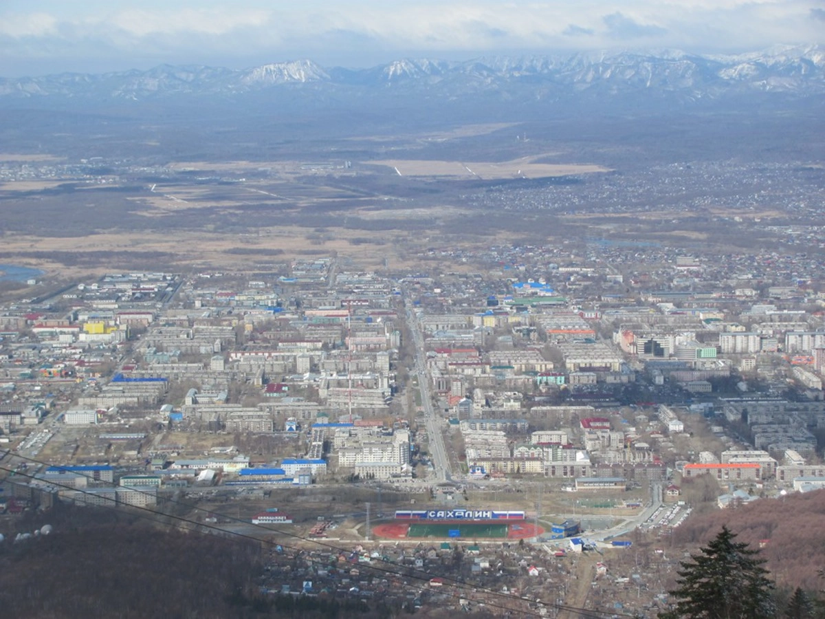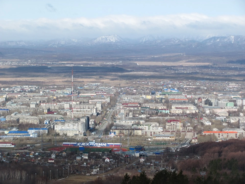 Наконец, вот и вершина — панорама Южно-Сахалинска и окрестностей просто захватывает дух!