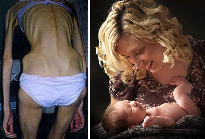 Эта девушка из-за истощения могла передвигаться только в инвалидной коляске. Посмотрите на неё справа, она светится здоровьем!