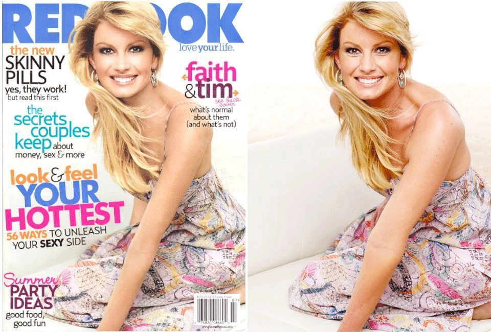 На обложке журнала Redbook 2011 года 44-летняя кантри-певица Фэйт Хилл выглядела превосходно. После того, как ее снимок с этой фотосессии попал в Сеть, разразился скандал. Фото без прикрас показало, что редакторы сделали Фэйт намного худее, убрали все морщины. На обложке появилась даже правая рука, пишет Anews.