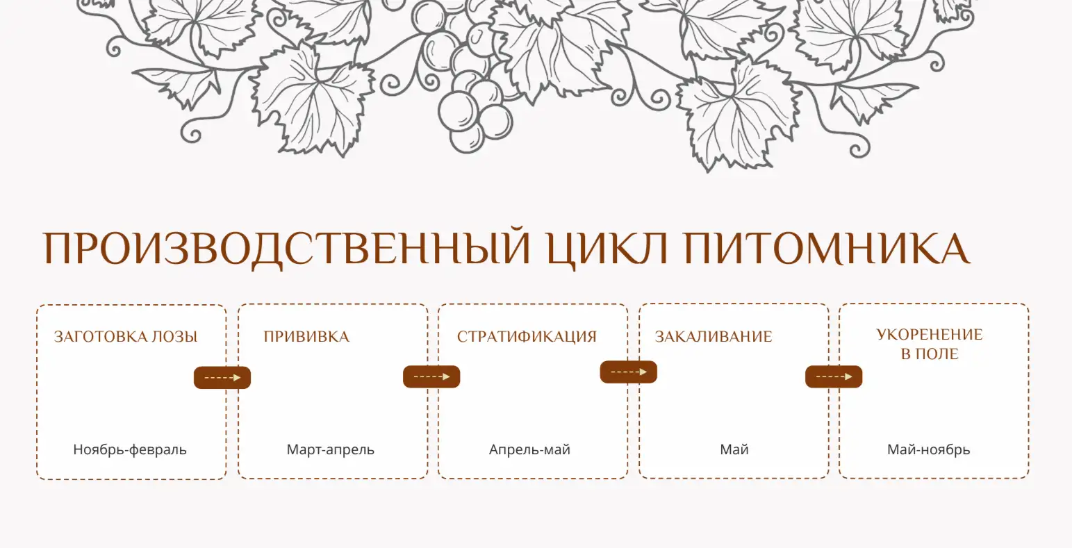 Полный цикл производства привитых саженцев состоит из трёх основных этапов: