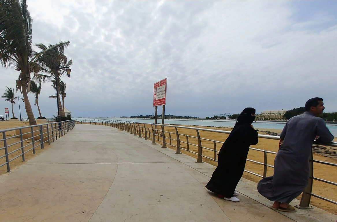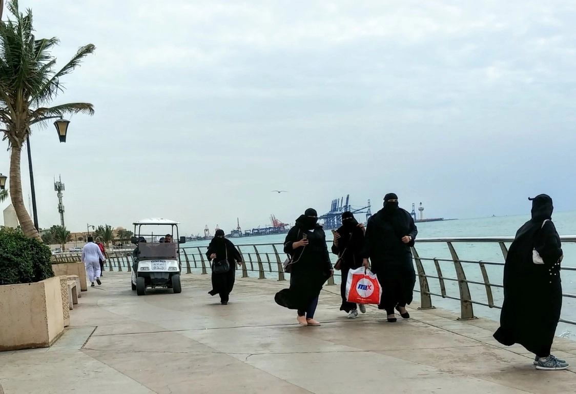 Редко самих по себе, обычно все же в сопровождении мужчин: мужа, отца, брата. В сельской же местности вы можете не встретить женщину вовсе. Женщины, как правило, будут в абайе и никабе, а часто еще и в черных перчатках. Эдакое черное изваяние без лица. Различать их достаточно сложно, ведь форма одежды одинаковая, а лица не видно. Женщины с открытым лицом встречались мне очень редко и исключительно в крупных городах — Джидде и Эр-Рияде.