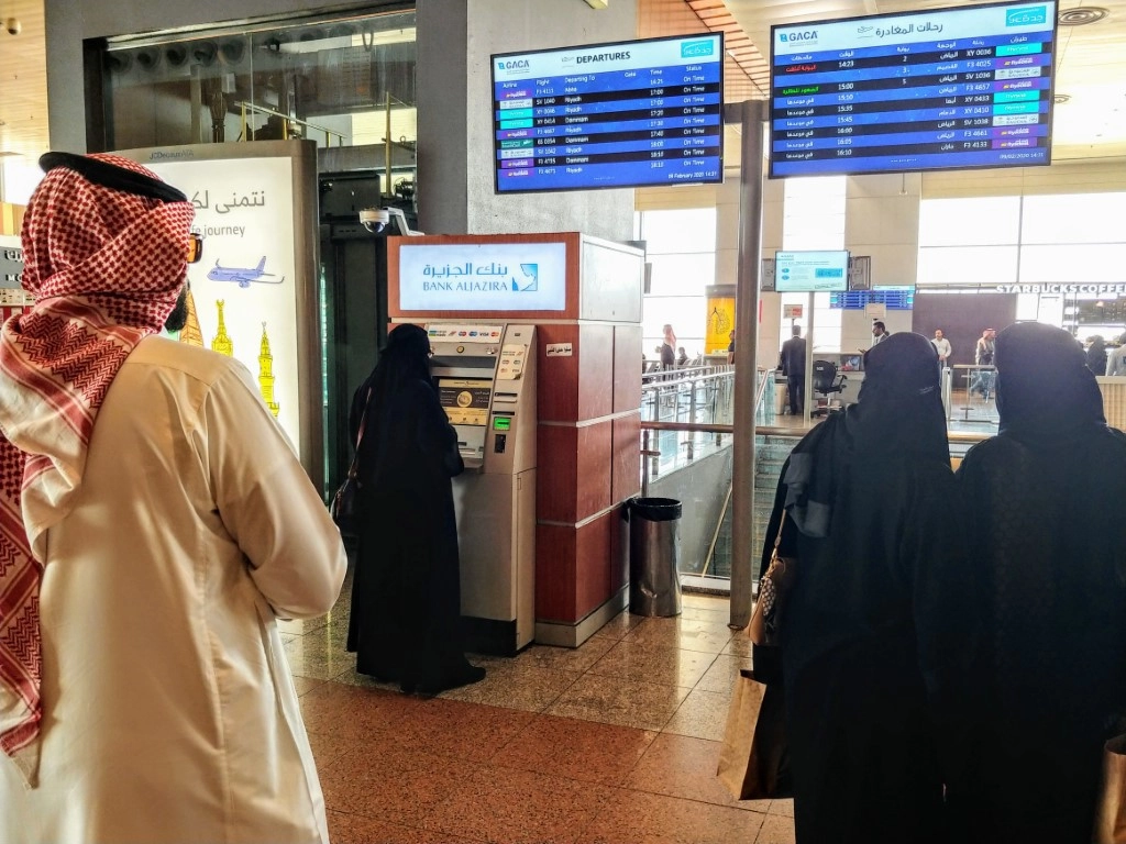 Общался я с кассиршей женского пола и вроде бы молодой девушкой (судя по кистям рук), ибо все остальное было закрыто. Она вдруг стала очень нервничать от того, что перепутала время отправления, уронила ручку на пол, чуть не смахнула туда же стакан с кофе и вообще неуверенно показала мне пальцем на соседнюю кассу, где работал ее коллега-мужчина. Я перешел туда, за полминуты решил вопрос и улыбчивый дядька-саудит кивнул на девушку «Она смутилась что вы иностранец, извините».