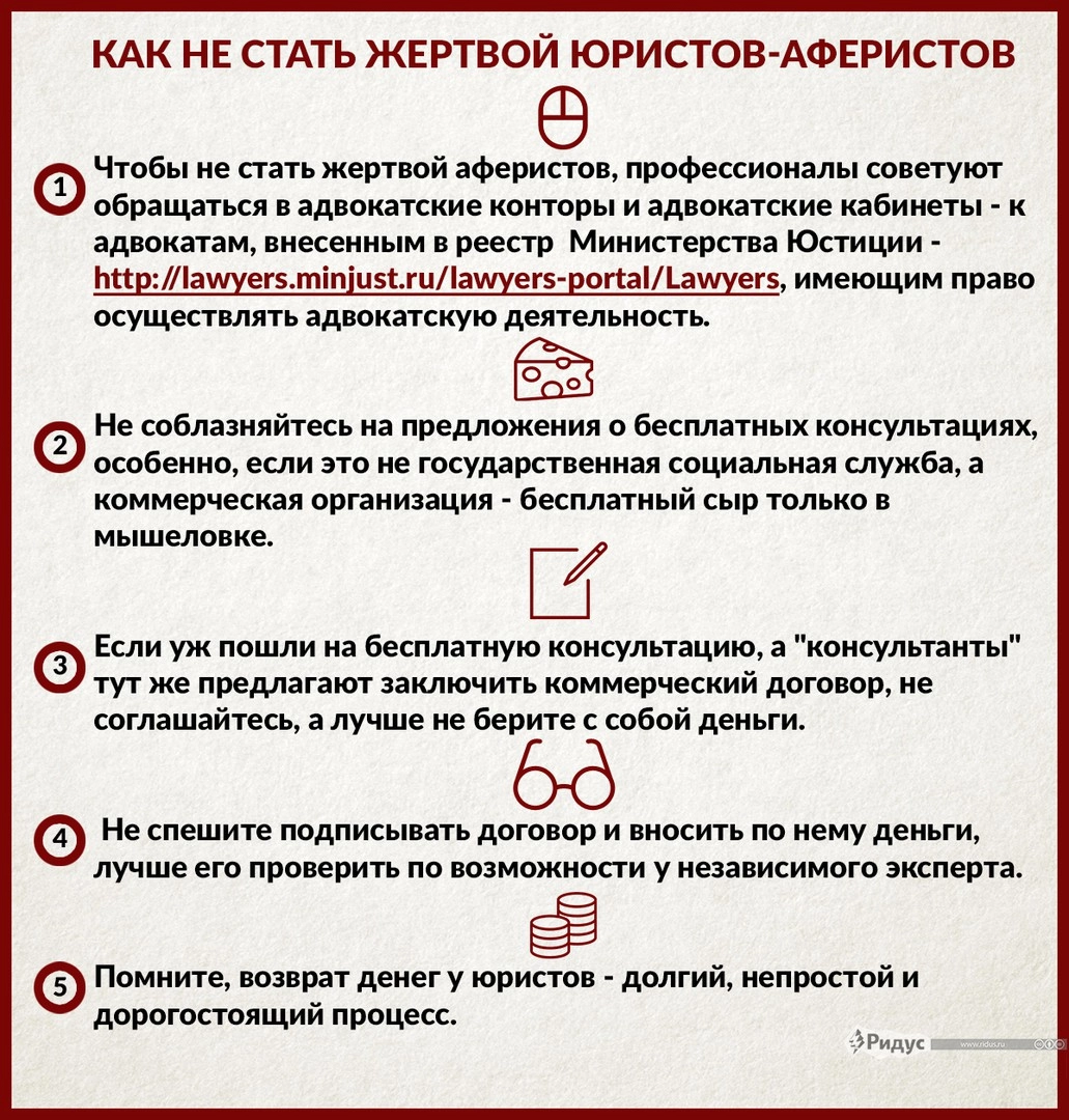 Для наших читателей мы подготовили пять советов о том, как не стать жертвой юристов-аферистов.