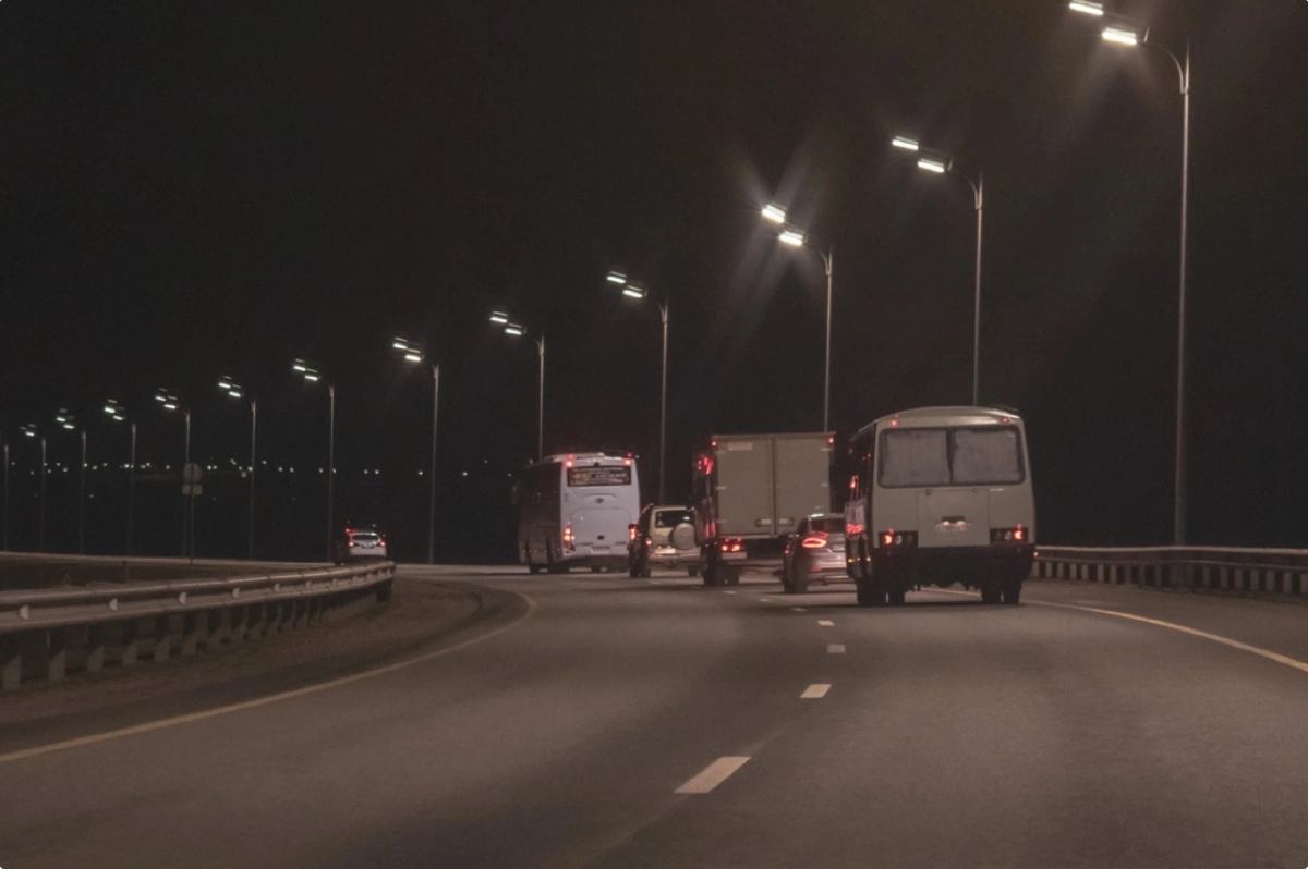 Дальше на дороге появился конвой: машина ГИБДД с мигалками, автобус, грузовик с багажом и другие представители правопорядка.