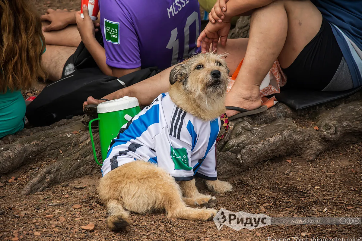 Больше всего в этой ситуации, конечно, жаль собак. Потому что есть сомнения, что они так уж болеют за сборную Аргентины. А в +37 на солнце синтетическая футболка на пушистом теле вряд ли ощущается приятно.