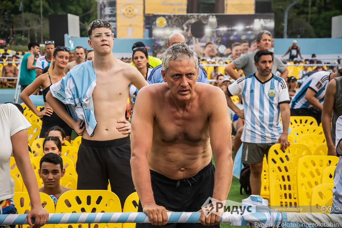 И, хотя перед ними нет реальных игроков, они надевают свои футболки с именем Месси, рисуют флаг на лице и совершенно искренне кричат, плачут, прыгают, ругаются и машут руками. И все это под солнцем в +37 градусов. Или даже больше.