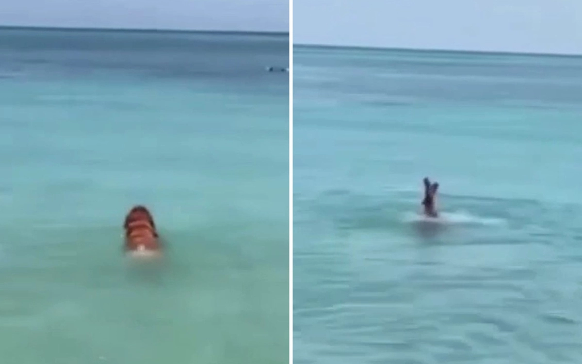 «Какая грация!»: тренировка собаки по синхронному плаванию попала на видео