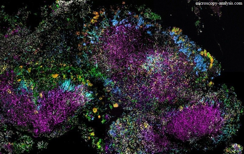 Вот как выглядит здоровая микрофлора рта, хотя, чтобы покрасить все бактерии, флуоресцентных красителей и цветов видимого спектра не хватит.