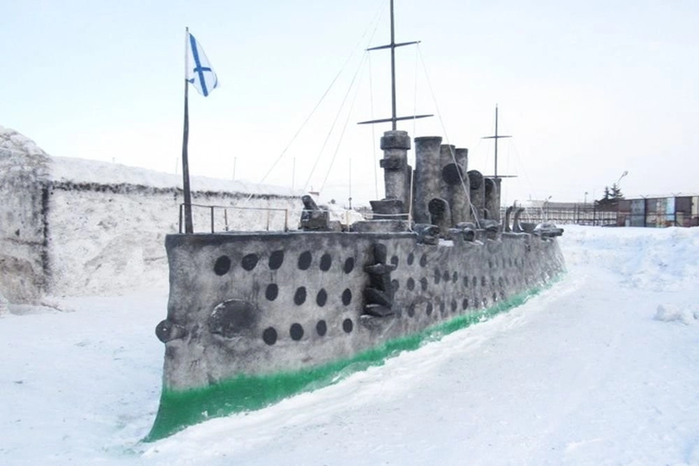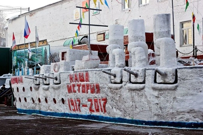 В одной из омских колоний появился снежный крейсер «Аврора».