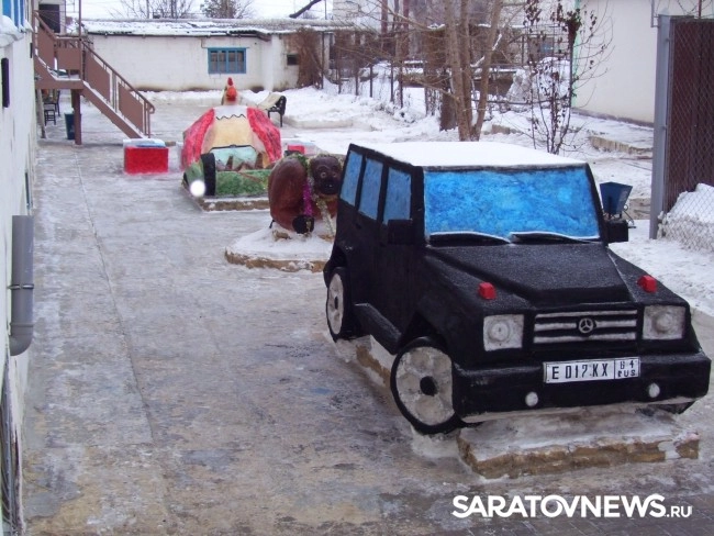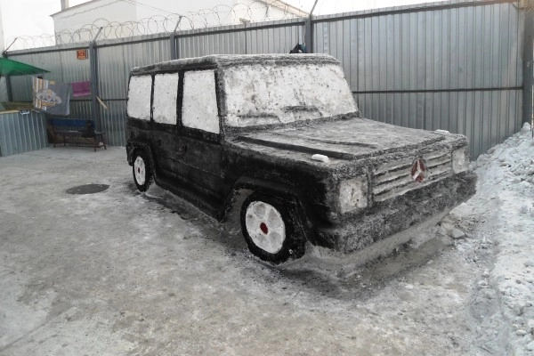 В Приморском крае лучшей скульптурой стал снежный «Гелендваген». Похожую скульптуру вылепили и заключенные Саратовской области.