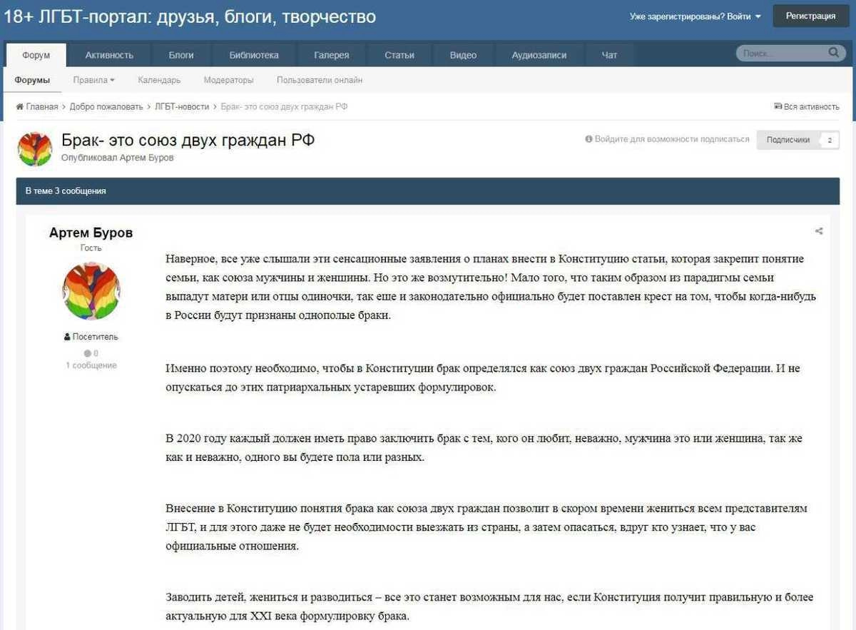Поправка о семье вызвала всплеск негодования среди ЛГБТ-активистов. Апологеты однополой любви считают её возмутительной. Ведь эта поправка, по их мнению, окончательно ставит крест на том, что в России когда-нибудь разрешат гей-браки.