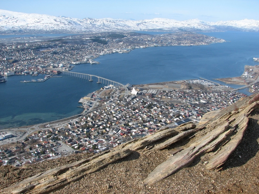 Позавчера днём мы были в городе Тромсе, где выпили по кружке пива в самой северной в Норвегии пивоварне, после чего поднялись на фуникулёре на вершину одной из окрестных скал и любовались оттуда невероятными пейзажами.