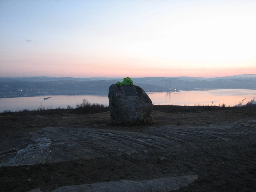 С сопки Зелёный Мыс, на которой находится памятник, открывается отличная панорама Кольского залива и огромного мурманского порта, главных ворот Российской Арктики. Светлая белая ночь, закат плавно сменяется рассветом, в порту не останавливаясь ни на минуту работают краны, громыхают железнодорожные вагоны, свистят гудки тепловозов. Город-порт работает и днём и ночью, встречая и провожая десятки судов, идущих по Северному морскому пути, одной из самых важных и самых сложных морских трасс в мире. Завораживает…