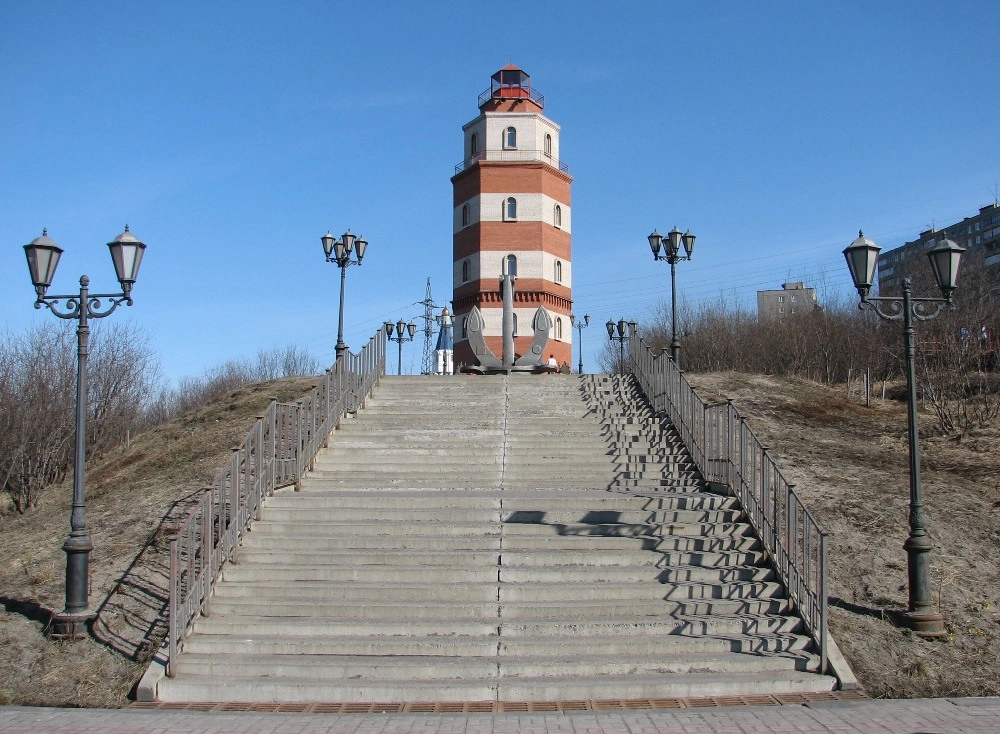 Мурманск — город, неразрывно связанный с морем и суровой Арктикой. Маяк-мемориал морякам, погибшим в мирное время. Внутри — мемориальные плиты и мемориальная книга, где записаны имена всех погибших в мирное время моряков, как военных, так и гражданских. Рядом с маяком установлен фрагмент рубки подводной лодки «Курск», рядом с которым находится плита с именами погибших в мирное время подводников.
