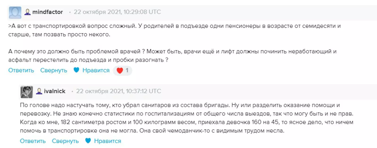 Но в основном пользователи Сети с пониманием отнеслись к «задолбавшимся» авторам «Кодекса», даже те, у кого возникали вопросы относительно достоверности отдельных пунктов манифеста. Многие комментаторы признали, что ситуация, когда «скорую можно вызвать померять давление и потребовать еще бахилы надеть», непременно будет порождать конфликтные ситуации.