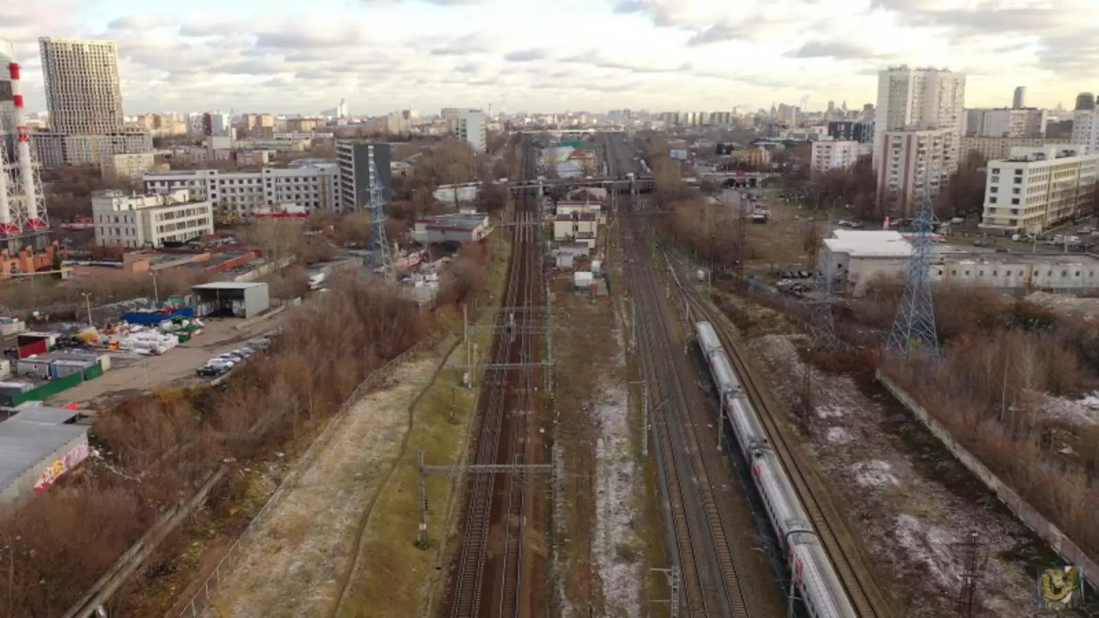 Посмотрим, как сейчас выглядит место, где в будущем построят тоннель для соединения районов Останкинский и Марьина роща (кадр из видео с YouTube канала «kosh_marius»), западный портал тоннеля будет примерно на месте серого здания справа (Огородный проезд, 2а):