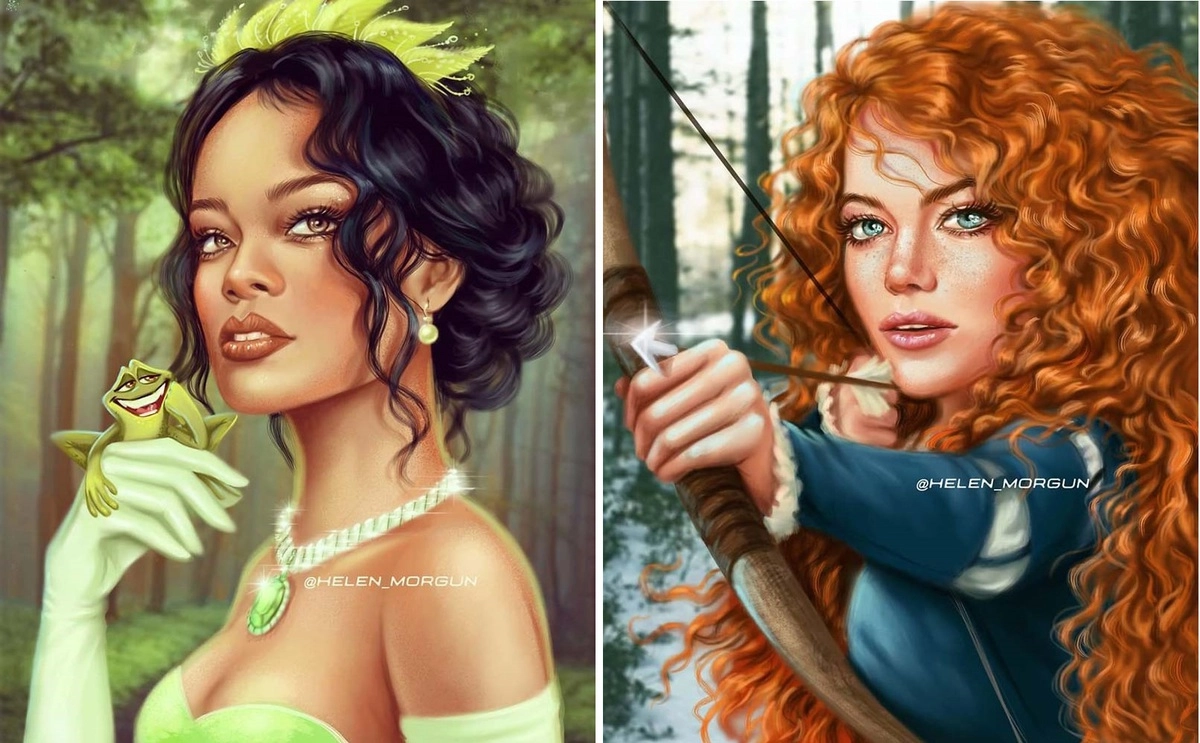 Диснеевские принцессы постоянно примеряют на себя разные образы — то щеголяют в откровенных бикини, то становятся яростными воительницами, а то и вовсе красуются на обложках журнала Playboy. В этот раз российская художница Елена Моргун пофантазировала на тему, а что если бы сказочных красавиц сыграли знаменитые актрисы и певицы. Получилось очень ярко и красиво. Результаты девушка опубликовала на своей станице в Instagram, где её работами любуются уже почти 30 тысяч человек.