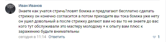 «Барбершопы — это понты для расточительных толстосумов, — категорично заявляет другой пользователь. — Стричься надо в обычных парикмахерских и салонах красоты, а бриться самостоятельно».