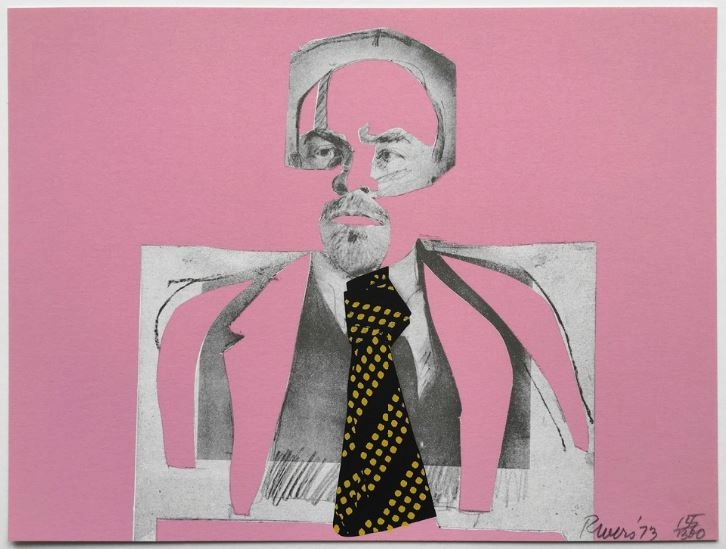 Методами дада-коллажа предтеча поп-арта делает вот так. У него эта композиция в разных цветах и вариантах встречается, техника шелкографии.