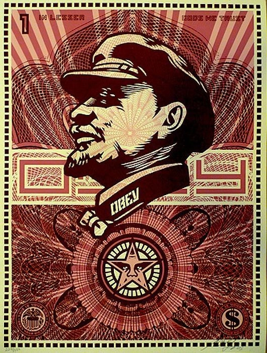 А вот этот пласт ленинианы самый интересный, на мой взгляд. Это работы западных, в первую очередь американских художников. Для них Ленин обычно — это харизматичный чувак, типа Че Гевары. Ничего более. Тем интересней глядеть, что у них получилось, потому что над его образом они не изгаляются (в отличие от современных российских авторов), а просто его трактуют, своим западным, соврисковым языком.